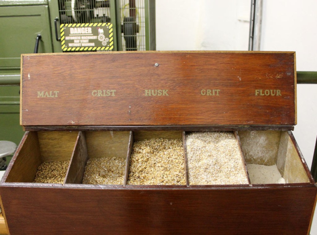 Once barley has been malted and dried, the next stage is for the malted barley to be milled. These days very few distilleries have their own maltings and kilns, and most buy in barley that has been malted to their particular specifications by large scale industrial maltings such as the one at Port Ellen on Islay, or those near Burghead or Muir of Ord.